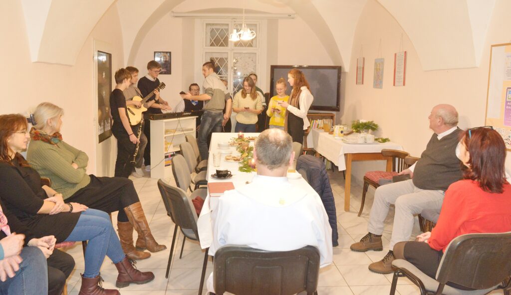 Studenti Arcibiskupského gymnázia Kroměříž zazpívali písničky za doprovodu hudebních nástrojů a svým radostným a spontánním projevem vytvořili velmi příjemnou atmosféru. Následovalo slavnostní požehnání prostor, požehnání přítomným a také všem, kdo do centra budou přicházet.